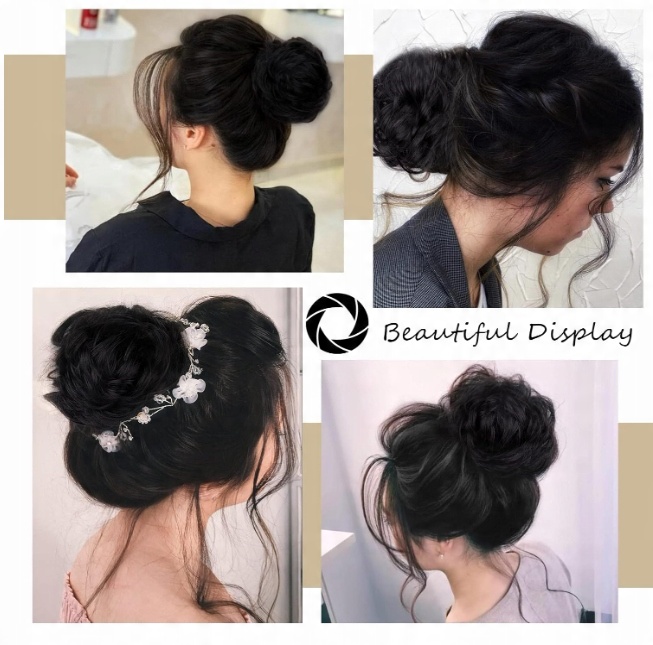 Пучок следует прикрепить к собственным волосам, закрепить резинкой и захватом. надежно держится благодаря эластичной резинке. Кроме того, вы можете оформить его с помощью булавок по своему усмотрению.