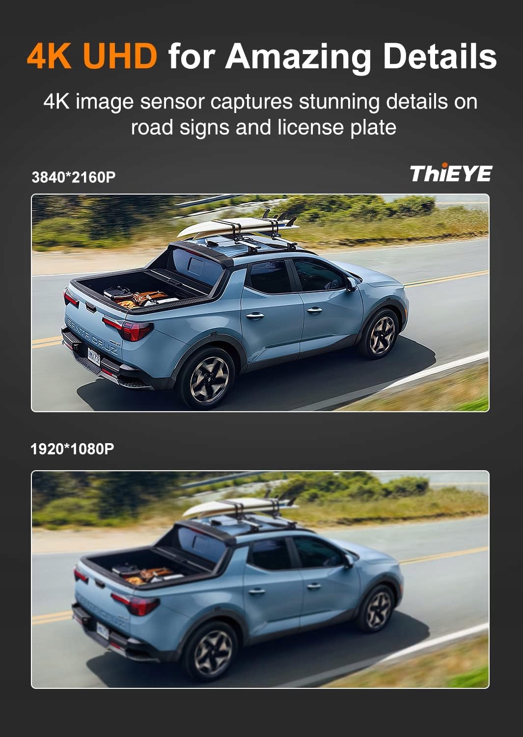 Оснащен фронтальной записью с очень высоким разрешением 4K. (3840*2160). В видеорегистраторе заднего вида ThiEYE carview4 используется высококачественный датчик изображения, диафрагма и стеклянный объектив с высоким светопропусканием, который обеспечивает кристально чистое видео/изображение во время вождения днем и фиксирует больше деталей ночью благодаря улучшенному ночному видению и широкому динамическому диапазону. p >