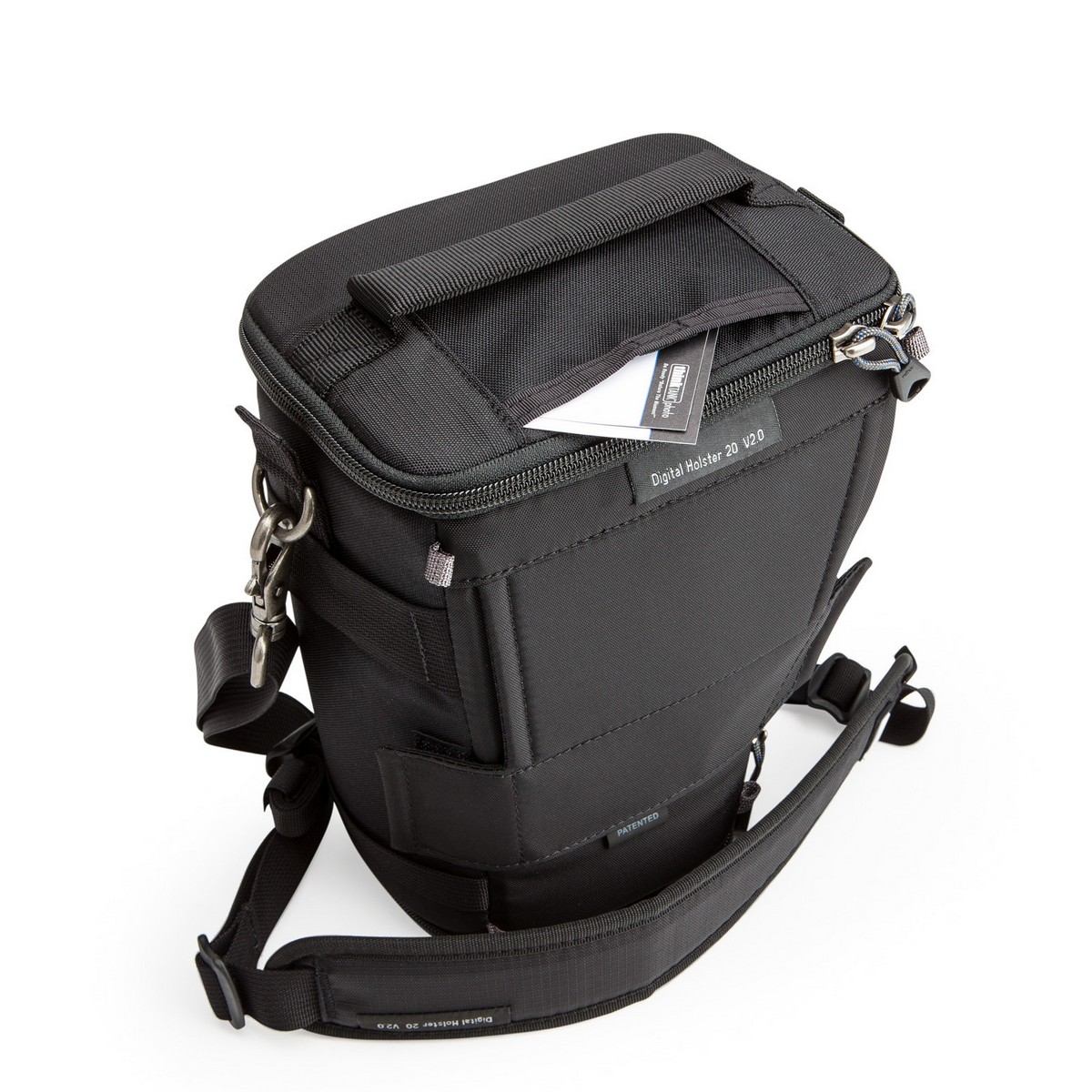 Think Tank Digital Holster — это широкая серия уникальных фотосумок, выполненных в форме кобуры. Вся линейка состоит из 8 моделей и это сумки, предназначенные для ношения беззеркальных камер, зеркальных фотоаппаратов с навесными объективами или больших телеобъективов. Digital Holster 20 – это фотосумка среднего размера, задача которой – безопасная транспортировка зеркального фотоаппарата с объективом 24–70 мм или даже 70–200 мм. Изготовлено с максимальной тщательностью из лучших материалов - нейлона 600D с гидрофобным покрытием, молнии YKK® RC, металлических пряжек и многого другого.