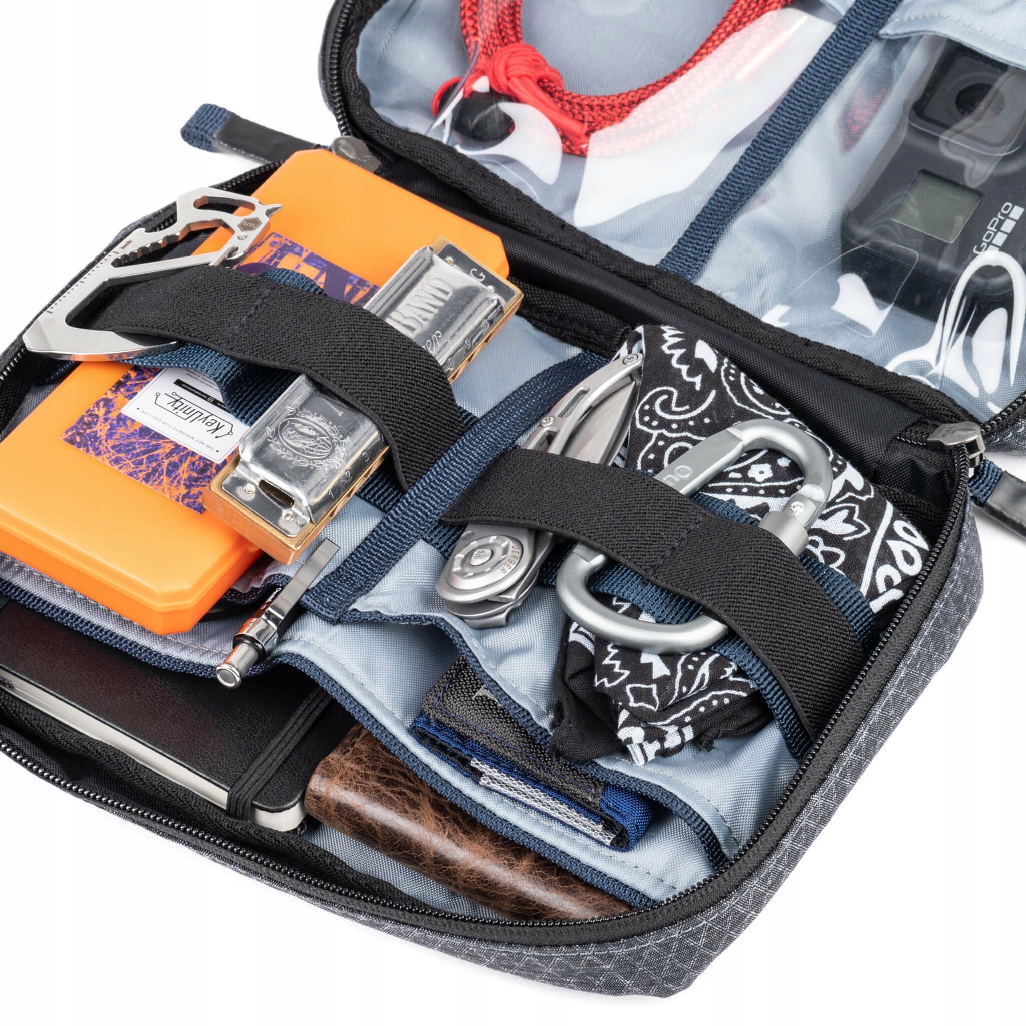 ThinkTank EDC Tech Pouch 20 — это самая большая версия серии органайзеров EDC, предназначенная для хранения большого количества электронных и фотоаксессуаров. Благодаря продуманному расположению отделений и карманов он позволяет легко поддерживать порядок и иметь быстрый доступ к кабелям, зарядным устройствам, павербанкам, портативным накопителям и адаптерам. Это решение создано для людей, которым необходим полный контроль над своими аксессуарами во время путешествий и повседневного использования.