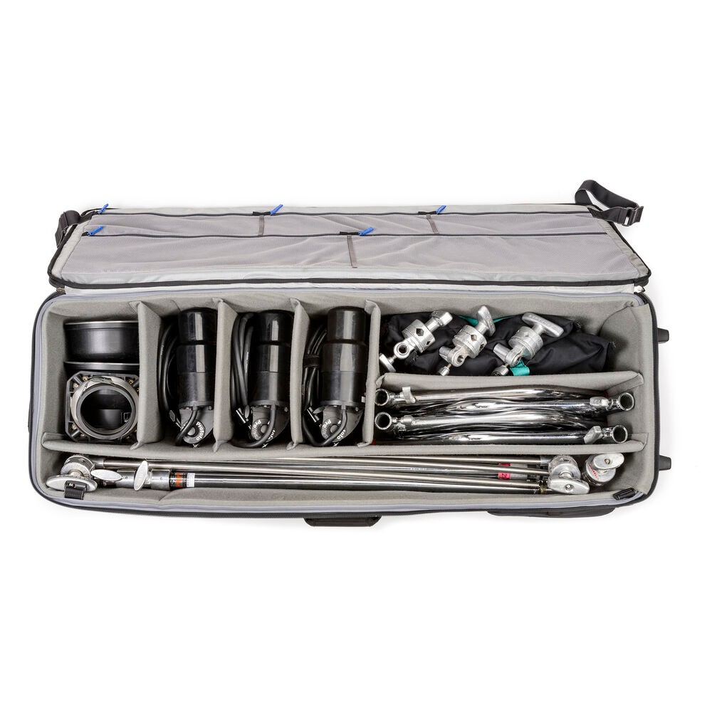 Основные характеристики: • Предназначен для софтбоксов, штативов, вспышек и многого другого. • Прочная, легкая, полужесткая конструкция. • Большой передний карман на молнии. • Внутренние сетчатые карманы. • Интерьер с усиленными перегородками. • Три ручки и большие колеса. • Держатель штатива сбоку. • Защитный трос и замок. Основываясь на успехе предыдущей модели, Think Tank Production Manager 50 V2 Rolling Gear Case имеет улучшенные колеса, внешние материалы, переднюю и боковые панели - и все это при уменьшении веса. Чемодан был тщательно разработан для удовлетворения потребностей производственных бригад, которым нужны прочные и портативные чемоданы для транспортировки оборудования на места и обратно. Чемодан позволяет быстро просмотреть свое содержимое, его можно быстро и легко загружать и выгружать, он долговечен для повседневного использования. Технические характеристики Внутренние размеры: 39,5 x 125 x 25 см
