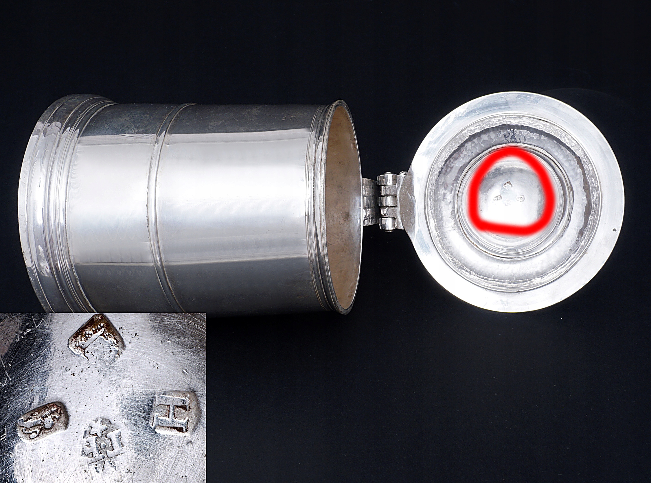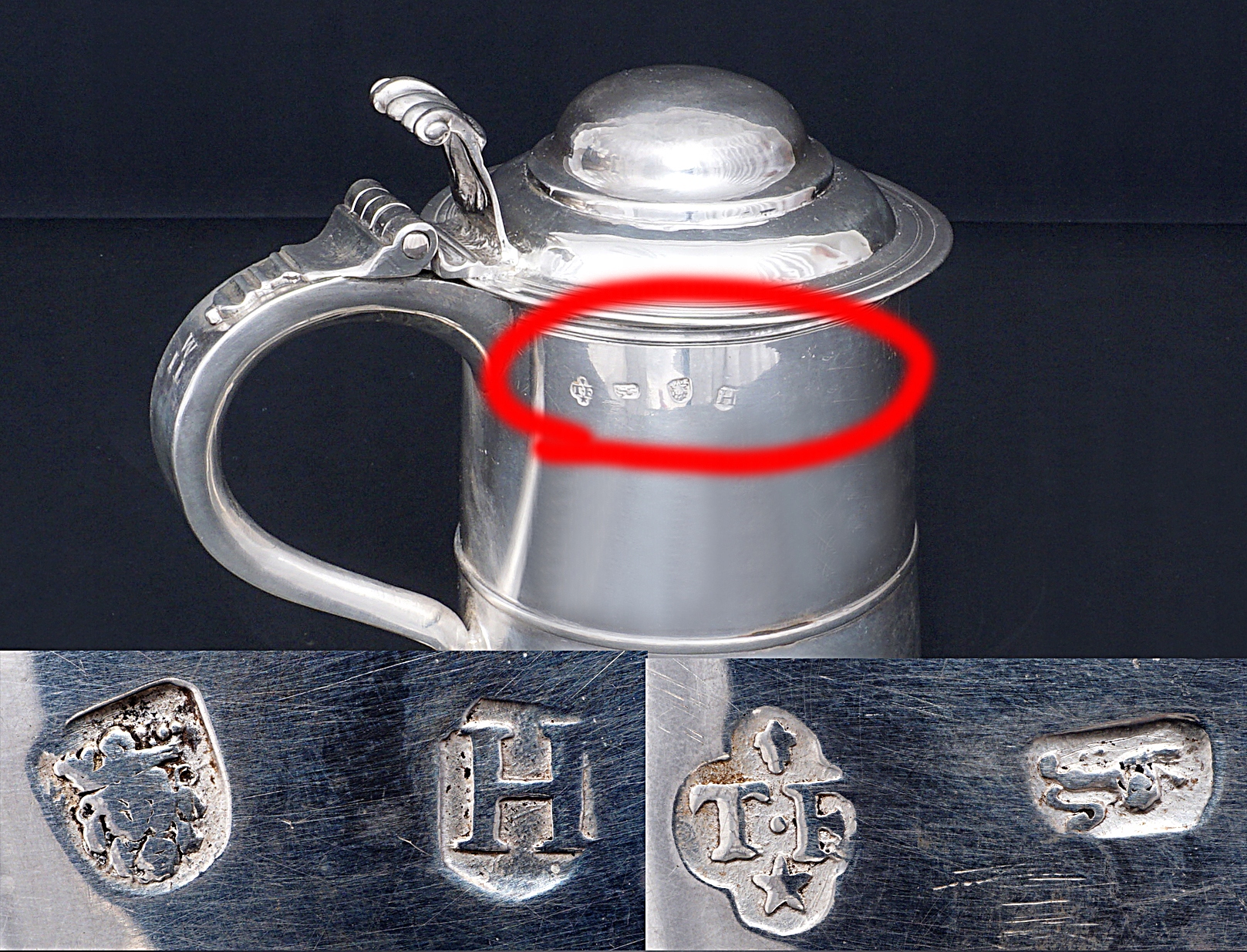 С маркировкой вручную, город клеймо, датировка H и ювелир TF.