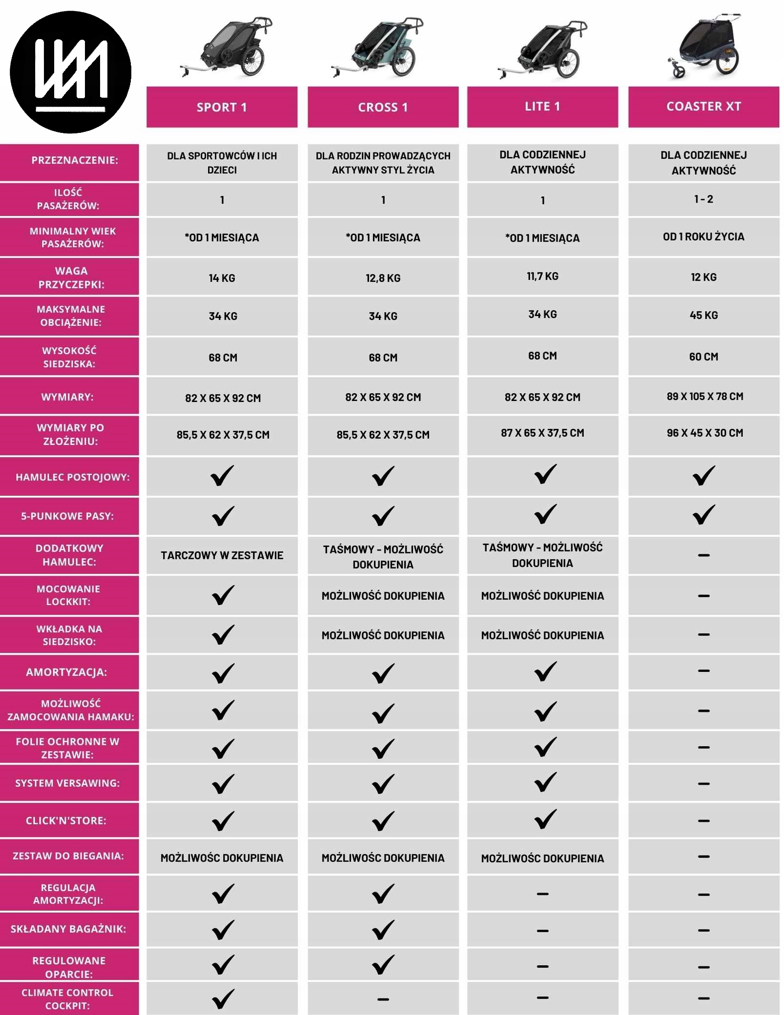 ХАРАКТЕРИСТИКИ МОДЕЛИ по сравнению со всей линейкой прицепов Thule:
