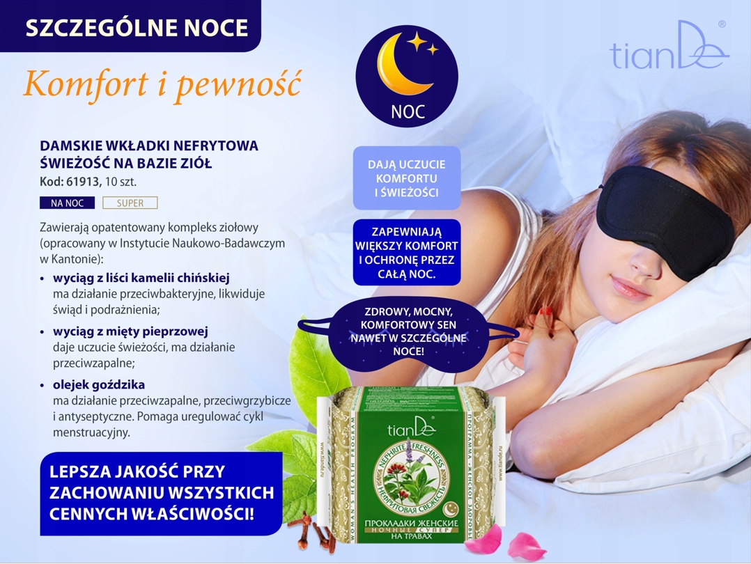 Ночь - это время регенерации, и здесь слишком много напряжения совершенно ненужна. В особые дни спокойствие и немой очень важны для хорошего качества сна. Женские нефритические вставки свежи, основываясь на травах ночью, они позаботятся о вашем мирном сне! Они защищены вашим и вашим здоровьем, а не только нижним бельем!