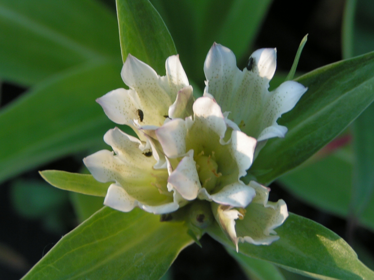 Малоизвестная летняя горечавка из Гималаев. В высоту достигает до 60 см. Цветет в июне-июле. Очень декоративен, очень эффектно смотрится на бордюре многолетников. Цветки белые, головчатые, менее эффектные, декоративны преимущественно за счет листьев продолговатой формы с острыми кончиками, светло-зеленые, блестящие, осенью красочные.