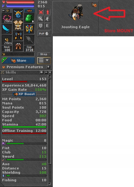 TIBIA 153 EK + 113/100 + STORE MOUNT + MONZA + EQ + FREE RK