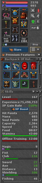 TIBIA 167 EK + 116/106 + CHARM + NEVIA + EQ + FREE RK