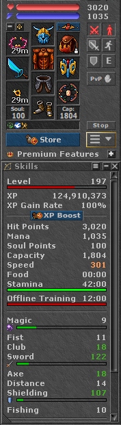 TIBIA 197 EK + 122/107 + THYRIA + CHARM + EQ + FREE RK