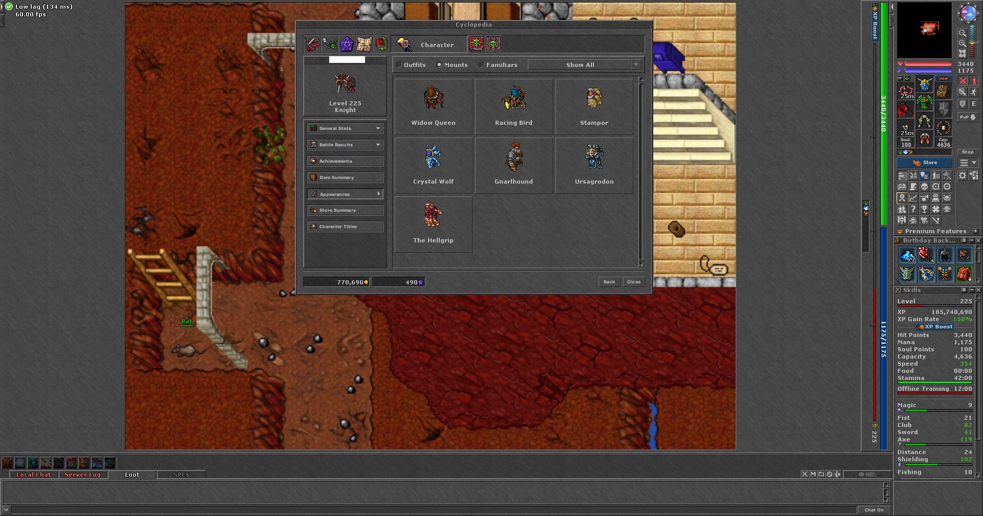 TIBIA 225 EK + 119/102 + CHARM + QUESTY + HARMONY + EQ + FREE + RK
