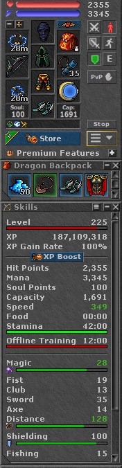 TIBIA 225 RP + 128/100 + CHARM + BONA + EQ + FREE RK