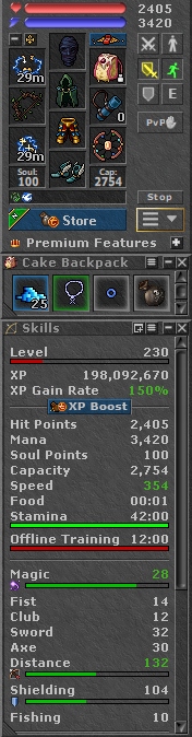 Тибия 230 RP + 132/104 + Charm + Secura + EQ + Free Rk