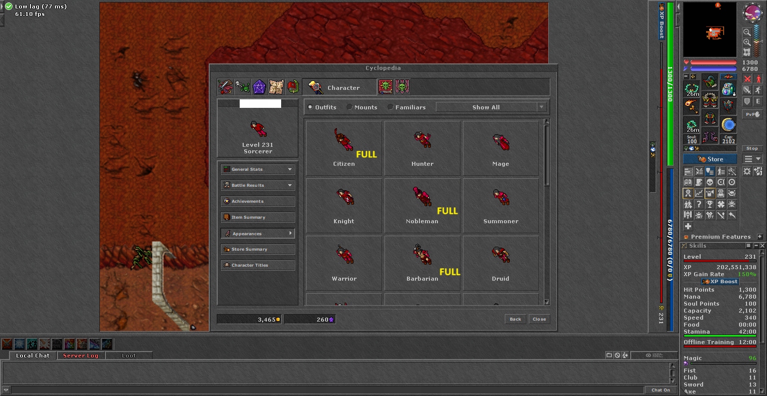 TIBIA 231 MS + 96 Mlv + 3 CHARMS + 14 Mounts + КВЕСТИ + BONA + EQ +FREE RK