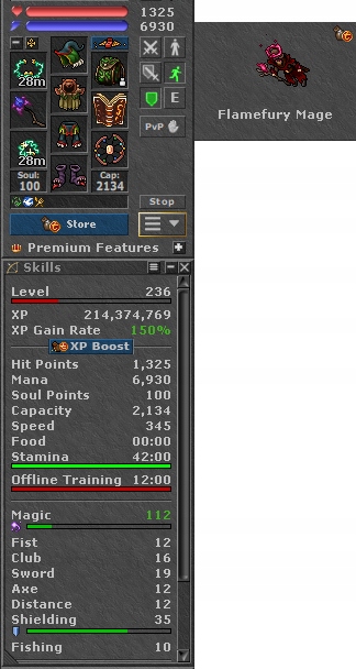 TIBIA 236 ED + 112 MLvl + Store Outfit + CHARM + BONA + EQ + FREE RK