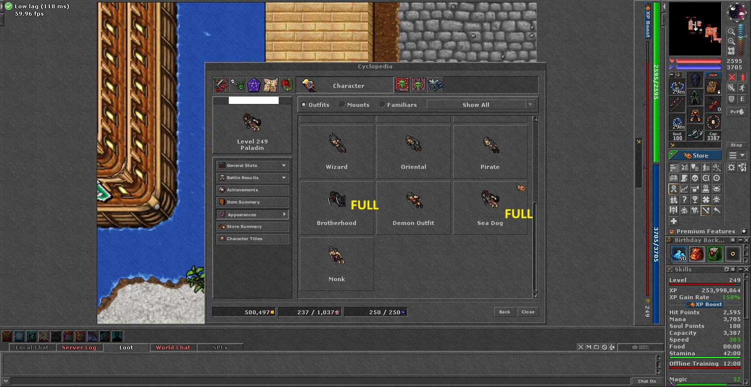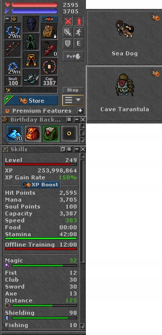 Тибия 249 RP + 125/98 + Mount Mount Mount and Outfit + 3 Charmy + Monza + EQ + Free rk