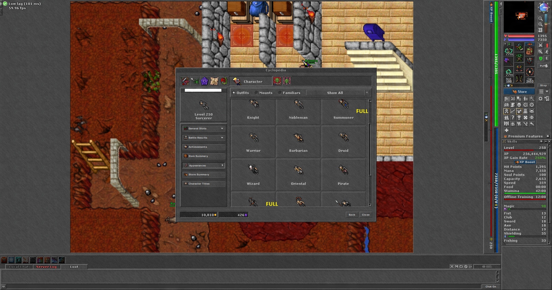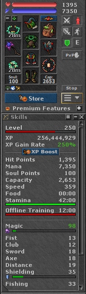 TIBIA 250 MS + 98 MLVL + CHARM + PELORIA + EQ + БЕЗКОШТОВНО РК