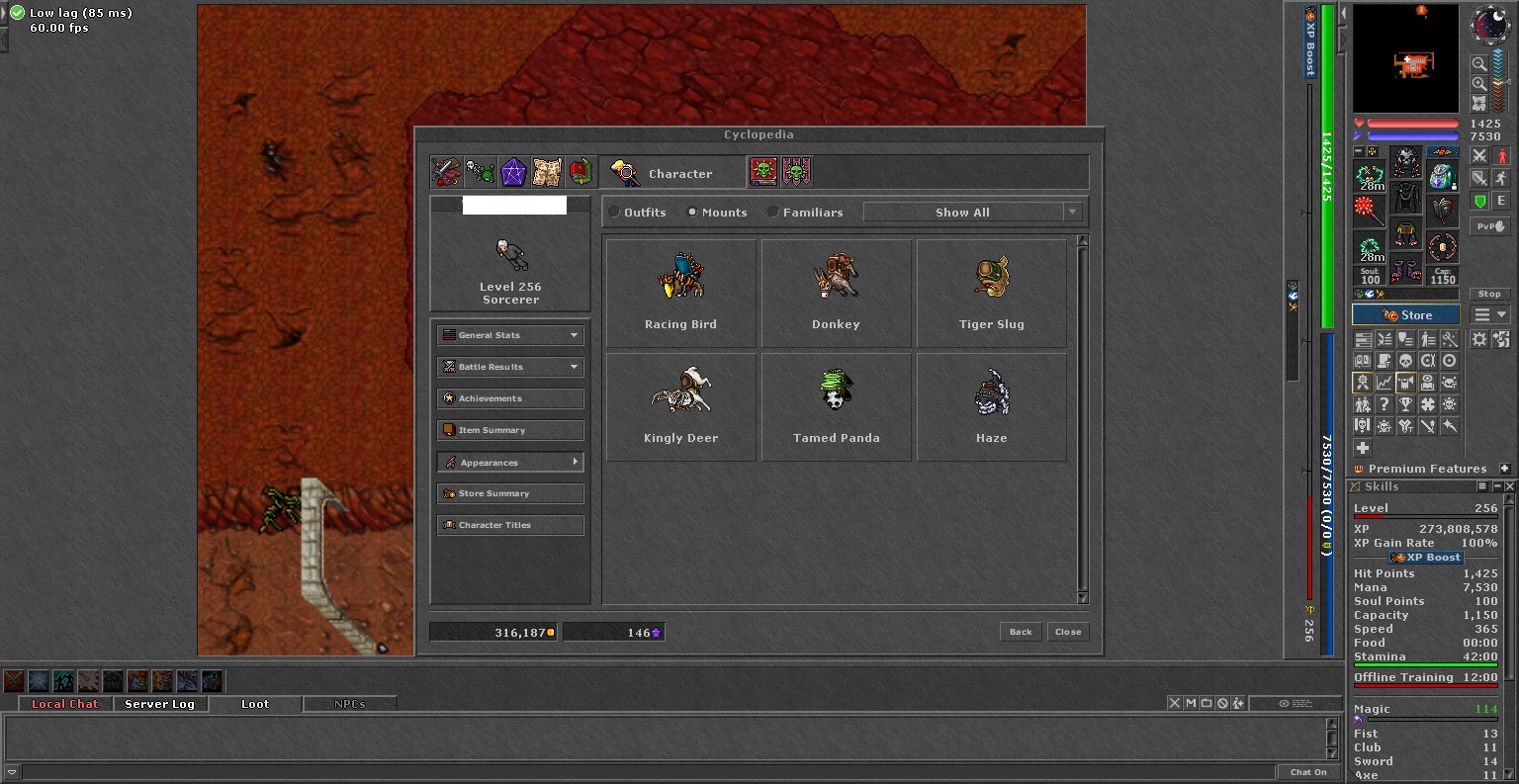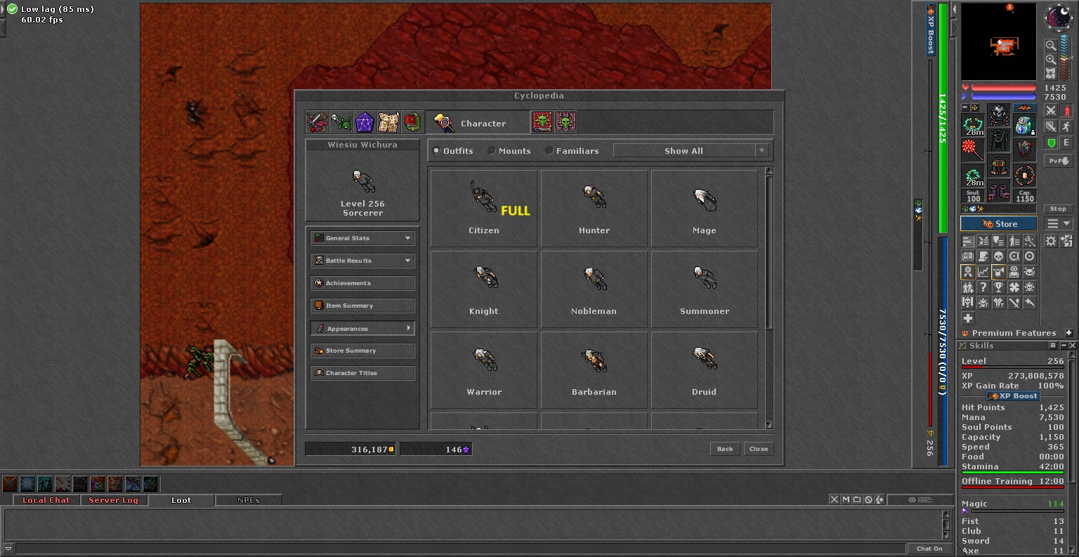 TIBIA 256 MS +114 MVL+ NEVIA + CHARM + EQ + FREE RK