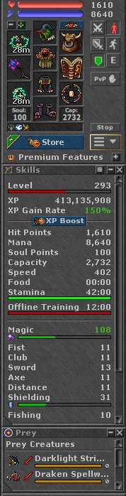 TIBIA 293 ED + 108 MLV + CHARM + PREY SLOT + NEVIA + EQ + FREE RK