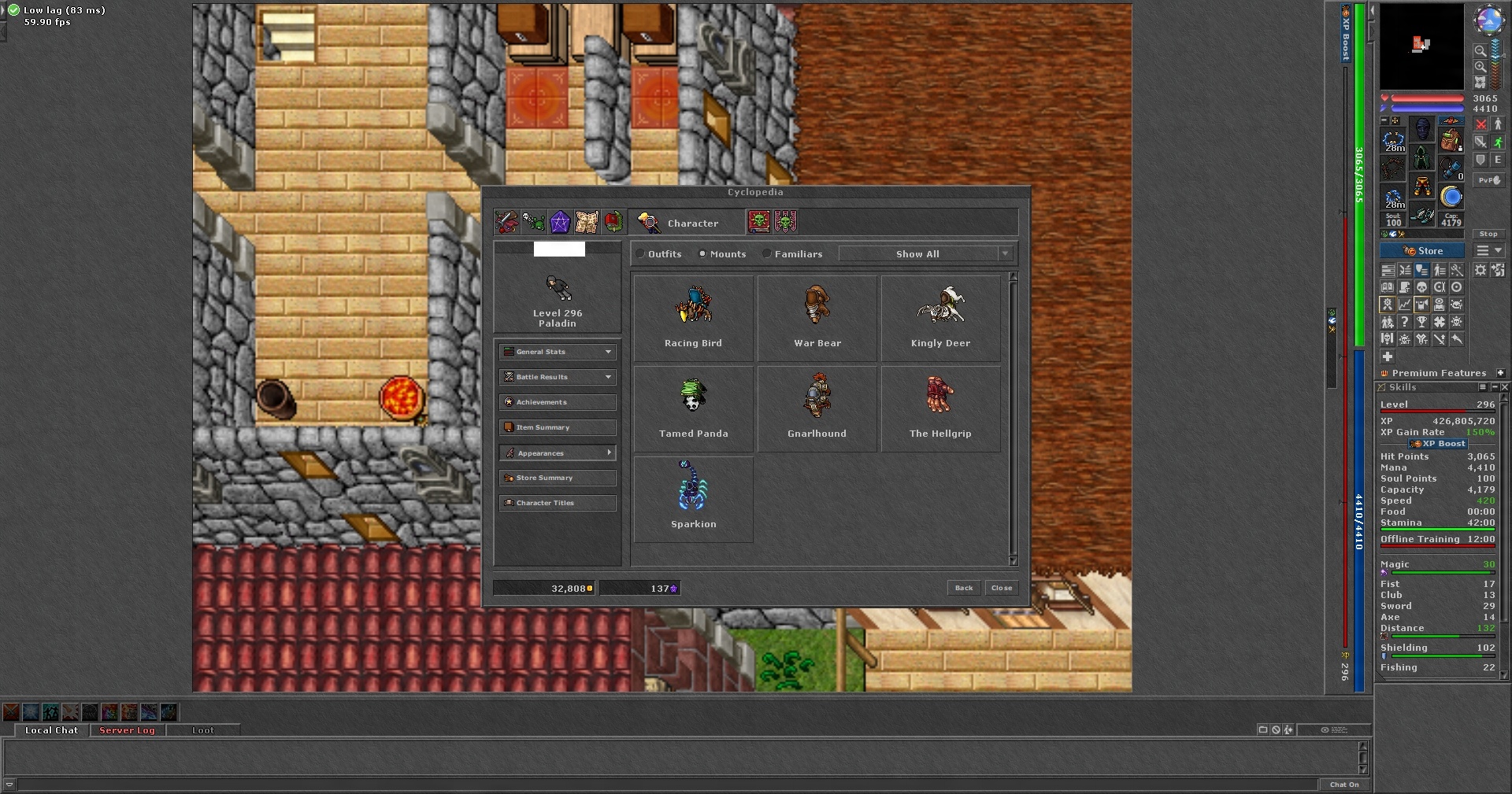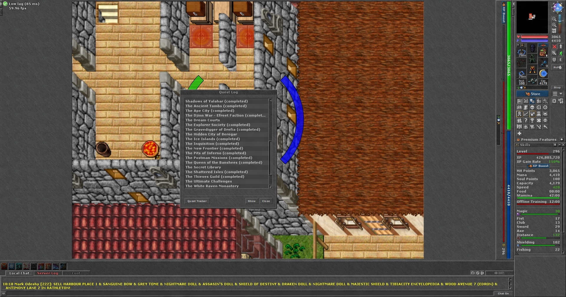 TIBIA 296 RP + 132/102 + 2 CHARMS + КВЕСТИ + SECURA + EQ + FREE RK