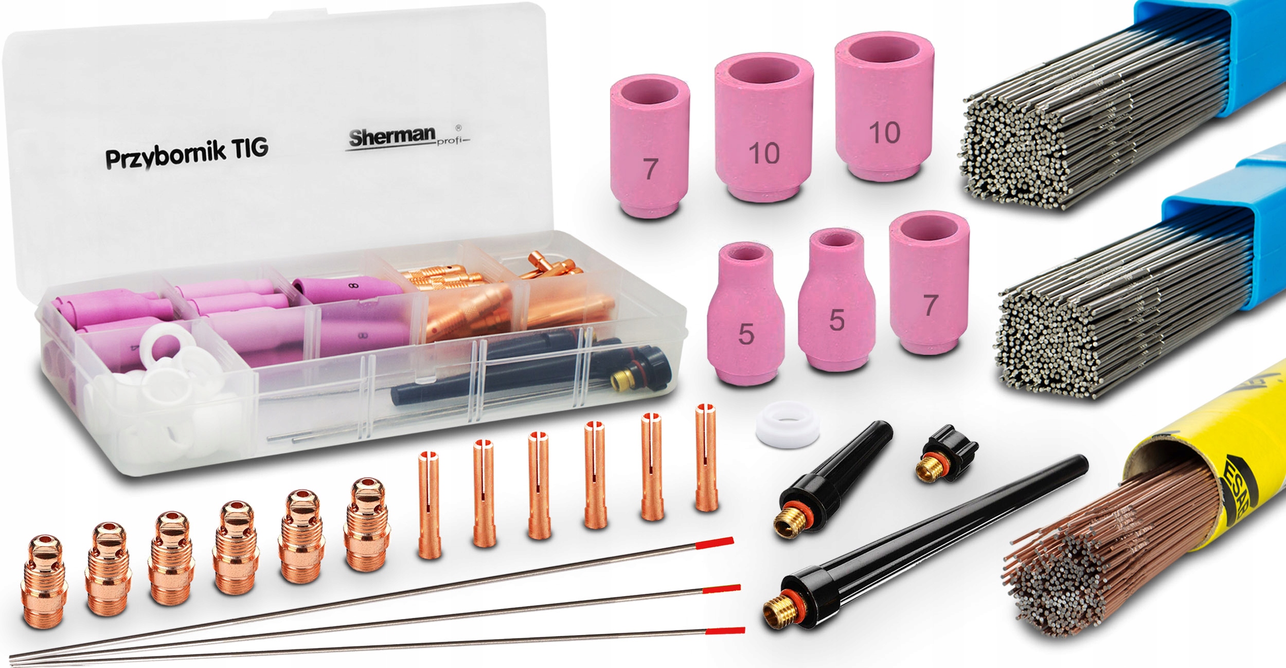 набор основных элементов необходимо для запуска приключения с сварки tig ac/dc . Правильно выбранные элементы набора позволят вам смущать каждый материал и рукуйте любую ручку сварки tig со стандартным sr 9/20 и kempi - небольшая головка сжигания
