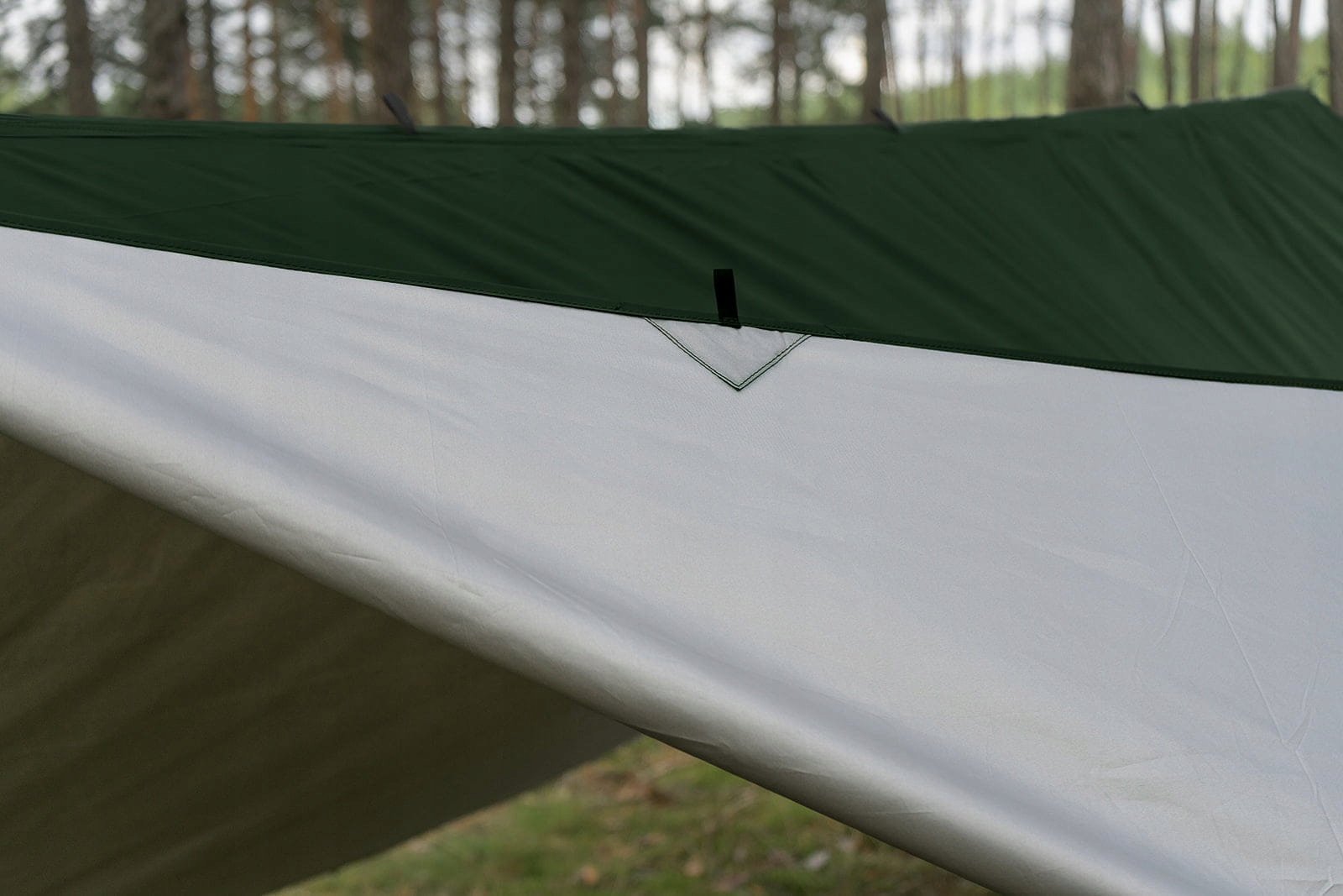 Твяз Идеально подходит для всех любителей приключений на открытом воздухе! Брезр был изготовлен из легкого, прочного и водонепроницаемого материала, который обеспечивает надежную защиту даже в самых сложных погодных условиях. Благодаря приклеенным швам и многочисленным точкам сборки наш брезент характеризуется высокой долговечностью и простотой сборки. Укрепленные крючки позволяют быстро изменить структуру листа, создавая фрагенскую палатку, импровизированную типи или распространяющуюся крышу, под которой вы можете комфортно провести время в лагере.