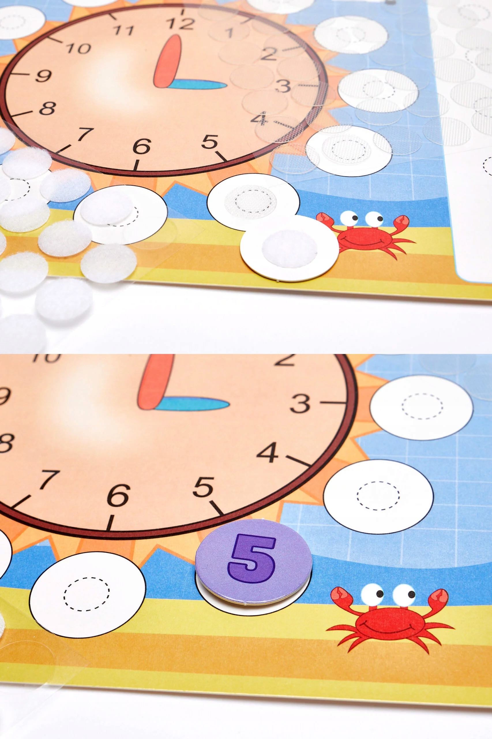 Книга состоит из множества страниц с множеством различных заданий, которые позволяют изучать цвета, животных, счет, зрительно-моторную координацию и формы.