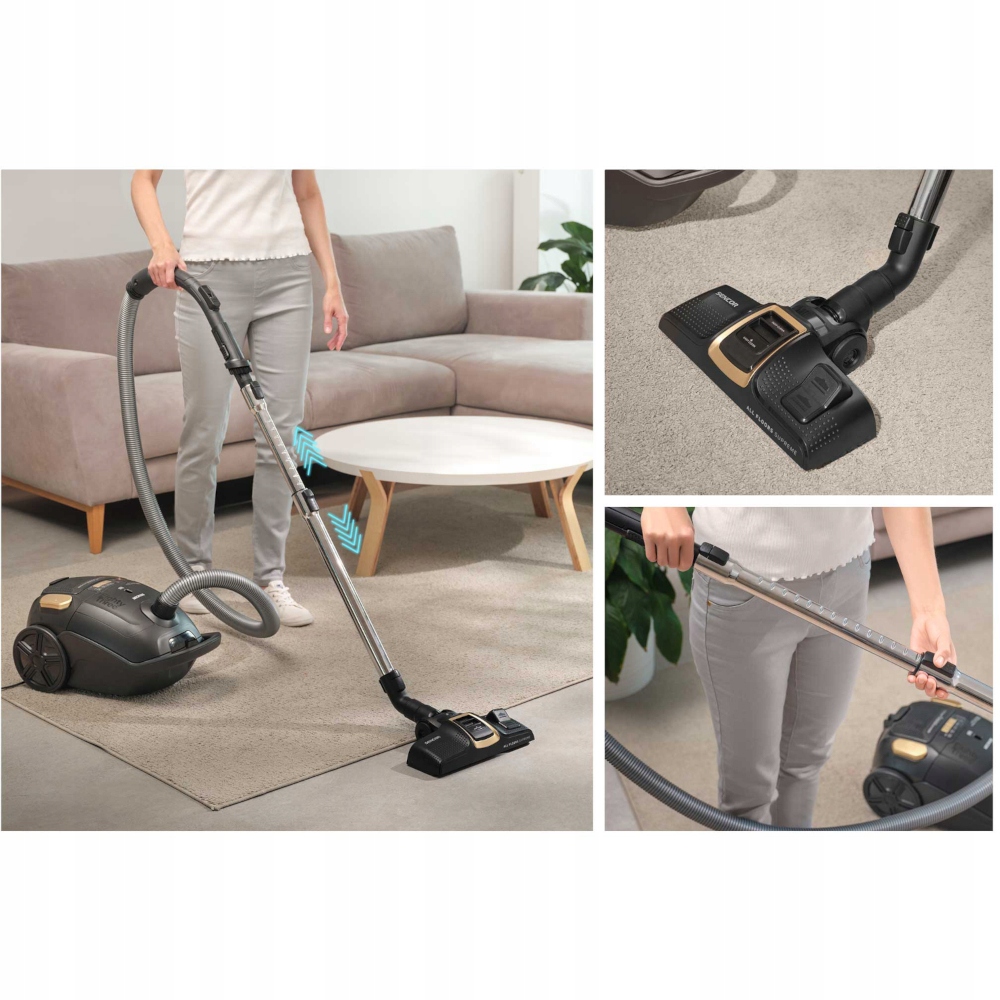 Потребляемая мощность: 800 Вт Уровень шума: 68 дБ Длина кабеля: 8 м Радиус действия: 11 м Объем сумки/контейнера: 3 л. Размеры (высота х ширина х глубина): 24x31,5x47 см. Цвет: черный и золотой Вес: 5,2 кг