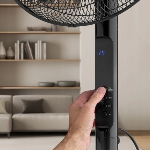 Вентилятор, естественно, оснащен функцией качания на 80 градусов, что обеспечивает равномерное распределение прохладного воздуха по помещению.