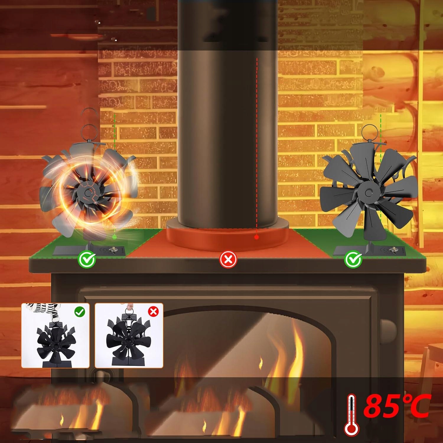 Установка не требуется, просто поместите вентилятор печи на гладкую поверхность столешницы печи, и вентилятор печи начнет вращаться по мере повышения температуры камина. Вентиляторы дровяных горелок Изготовлены из анодированного алюминия с хорошей теплопроводностью, не деформируются и не ржавеют, даже если долго работают при высокой температуре.