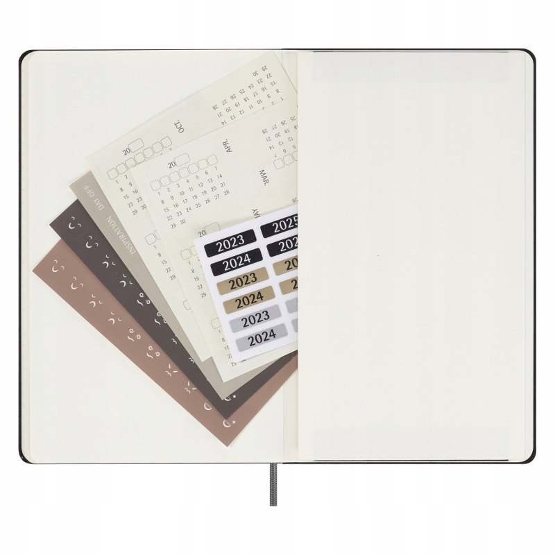 наклейки включены для персонализации ваших планов, в том числе наклейки с номером года на корешке и наклейки с месяцем для разделов.