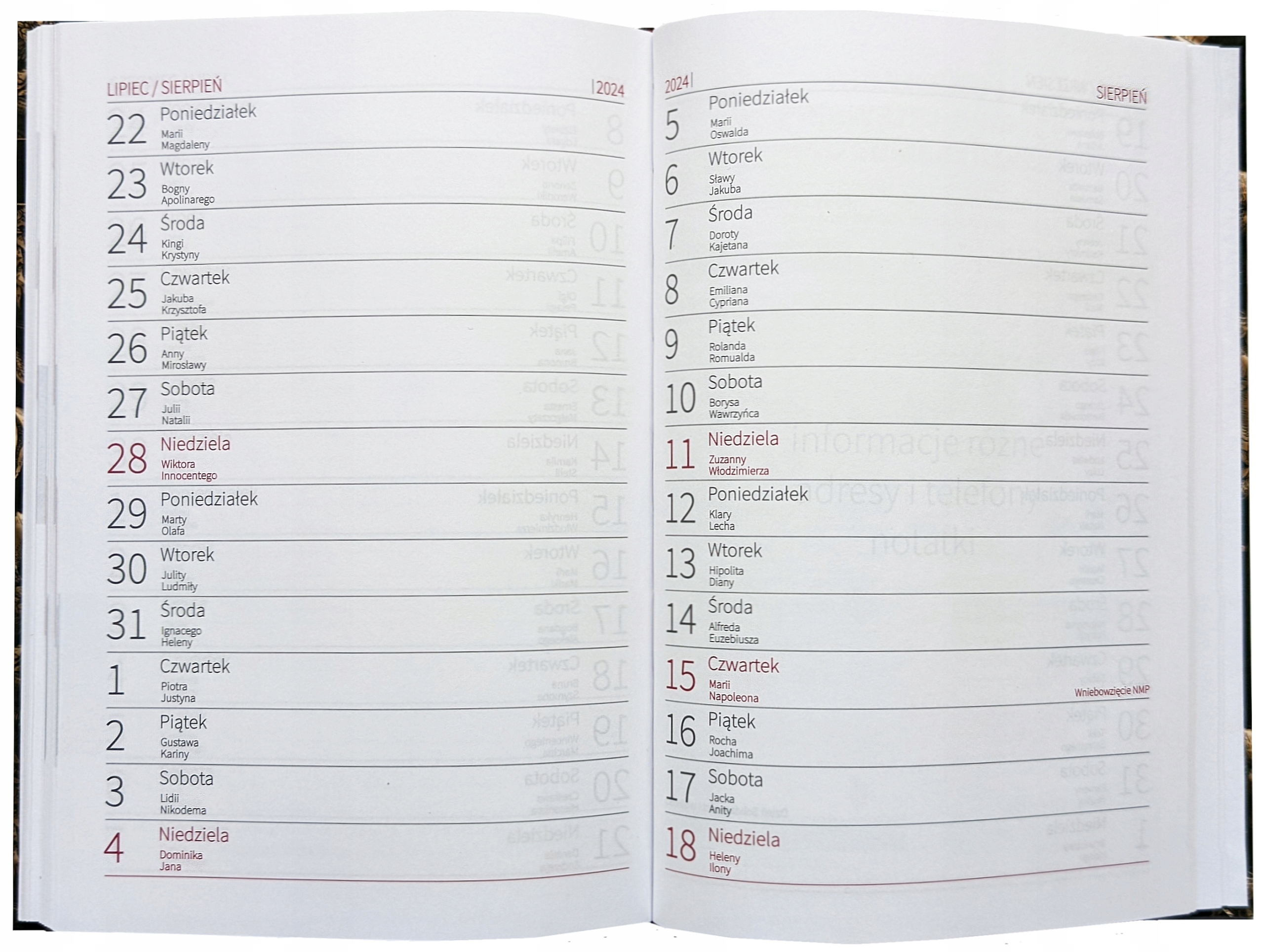 Для меньшей толщины (и веса) — праздничные месяцы 2024 г. указаны в двухнедельной версии/странице без блокнота