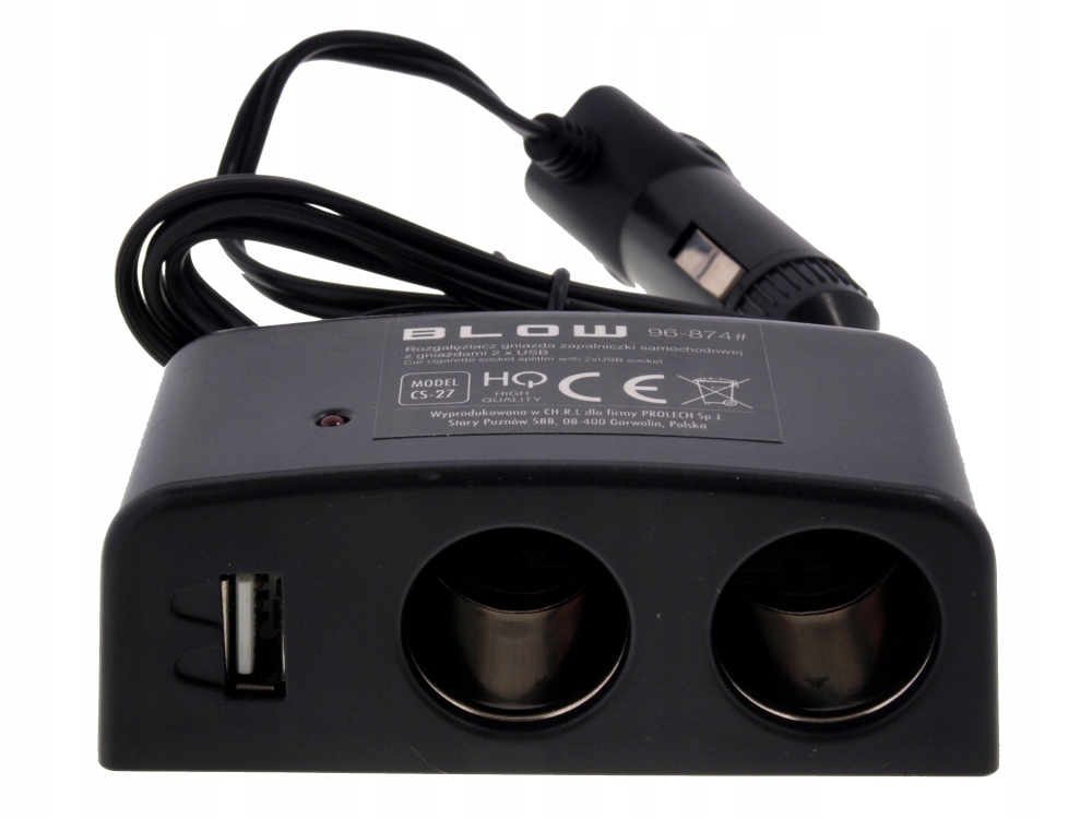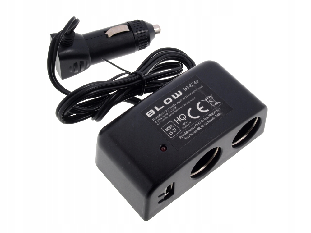 Двойной разветвитель гнезда прикуривателя Blow с кабелем длиной 50 см и дополнительным портом USB.