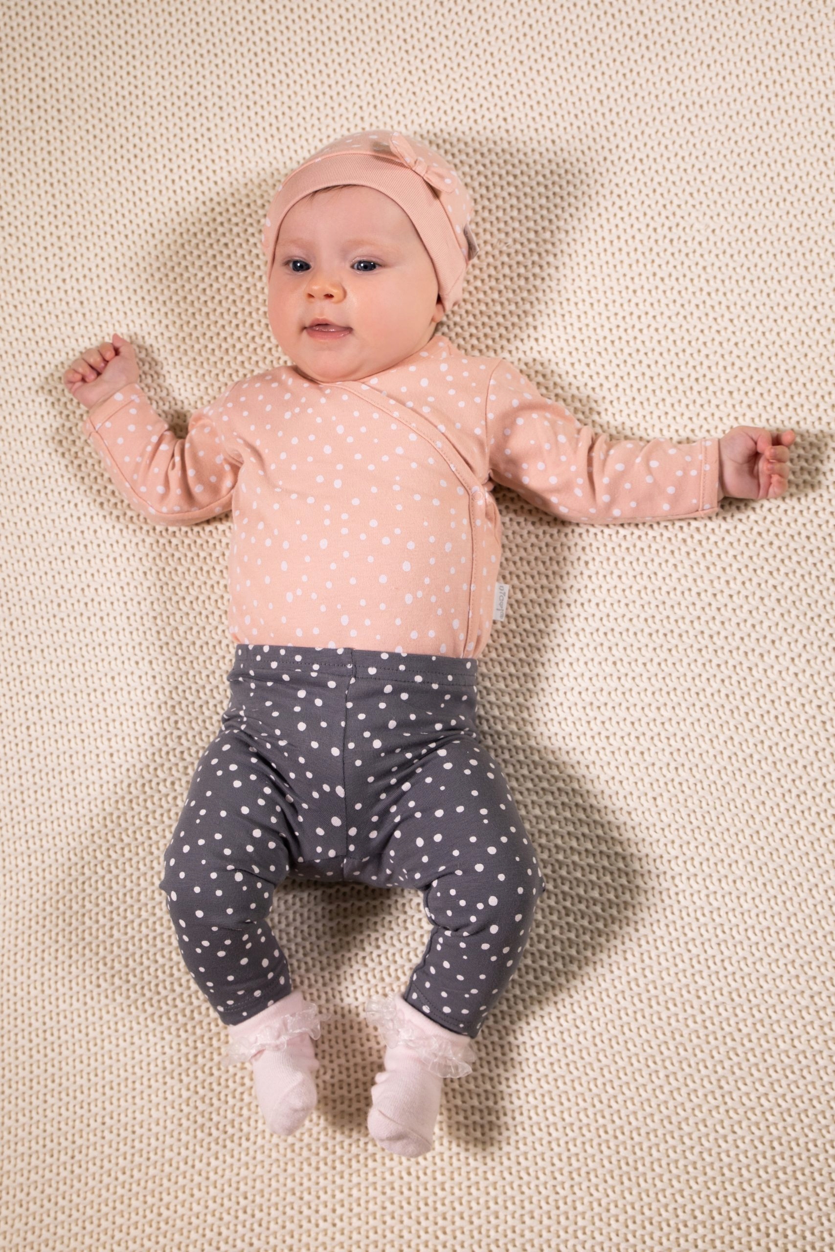 хлопковые светло -розовые боди с деликатными точками.