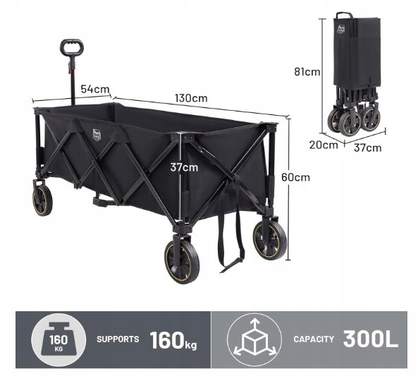 Timber Ridge Flouging XXL Beach Croller с задней дверью, 135 кг, долговечным, складным, с отрядными широкими колесами и регулируемой ручкой, снаружи, кемпингом, в саду, шоппинг, черный h1> Производитель: HF h2>