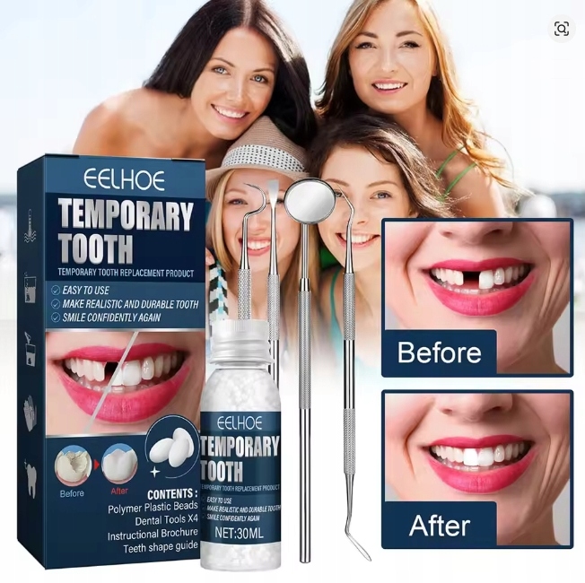 - Временное восстановление: комплект для ремонта зубов можно использовать для временного ремонта пропавших и сломанных зубов и помощи людям, которые потеряли зубы, быстро образуя аккуратные зубы.