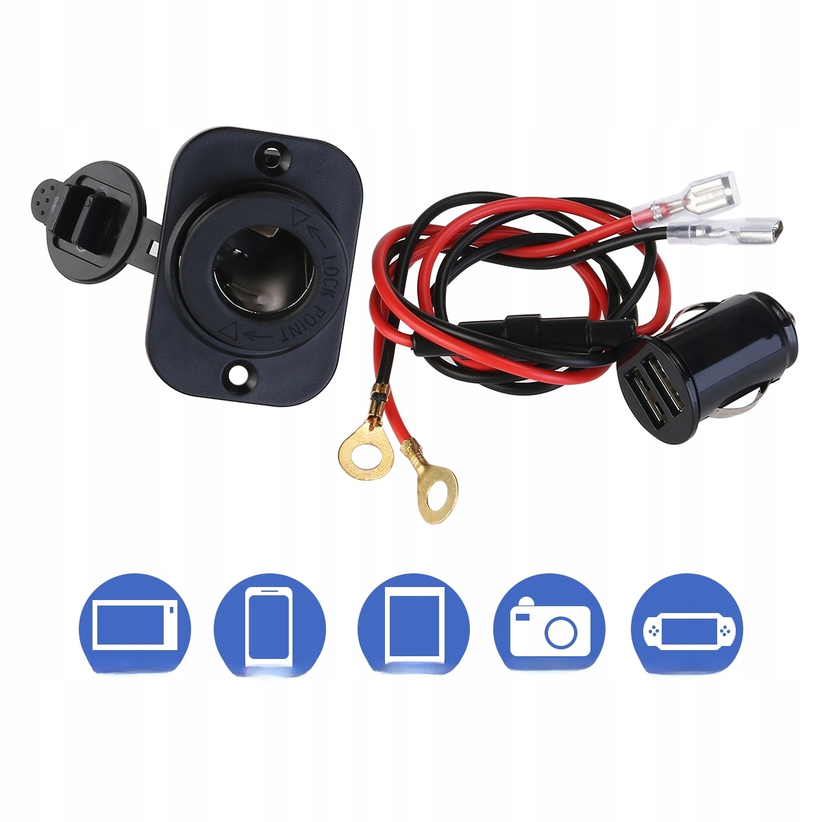 ✅ Двойной порт адаптера питания USB для зарядки портативных USB-устройств, таких как MP3-плеер, GPS и другие мобильные телефоны