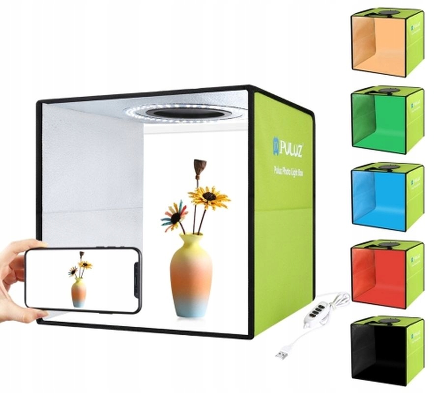 - Теневая палатка 30x30x30 см со встроенным светодиодным кольцом (26LM/10W) и USB -кабелем для источника питания и интегрированного пульта Защитный случай для набора
