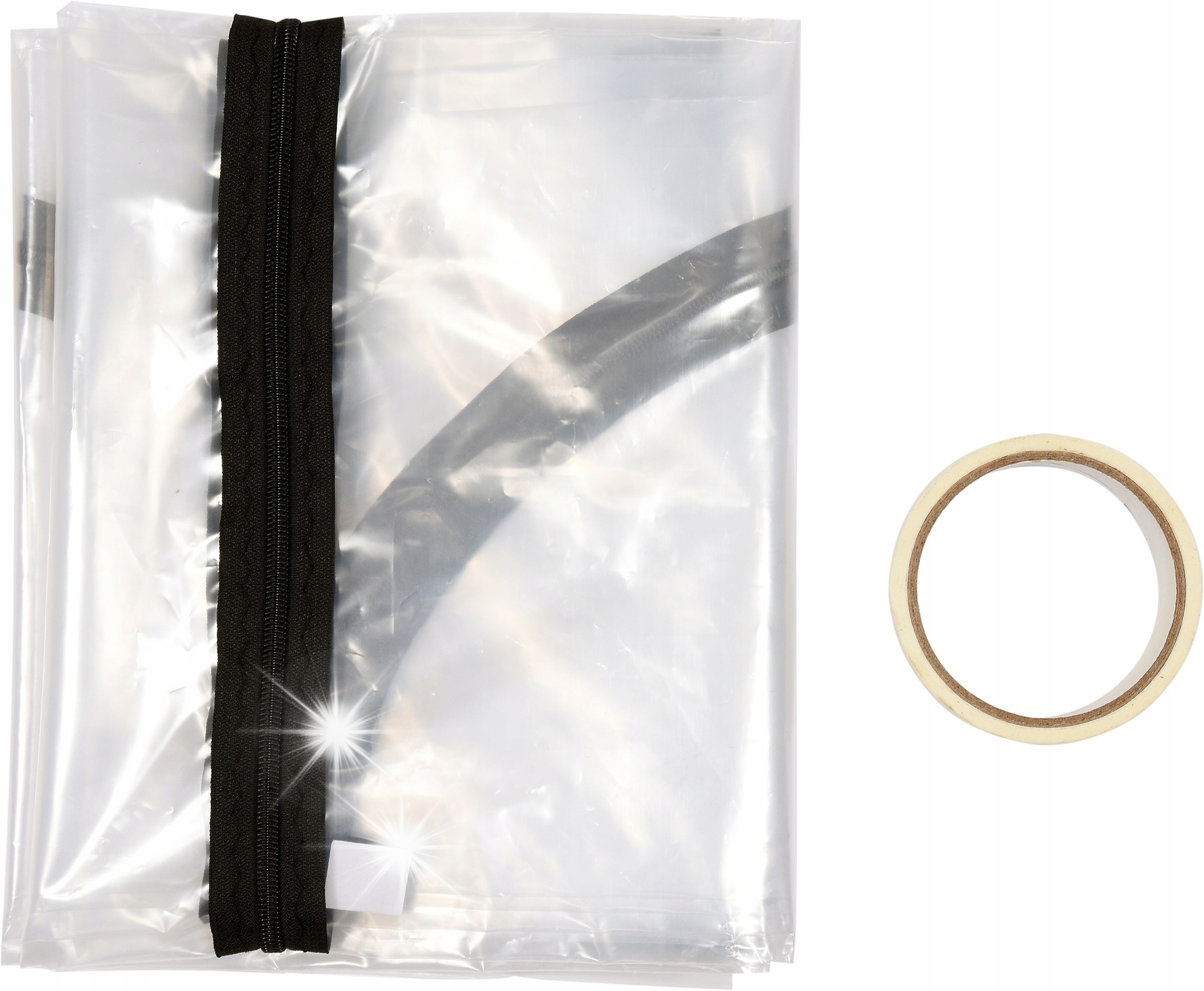 Пылельный покров дверных отверстий, изготовленных из толстой, бесцветной, прозрачной фильмы PE. Открытая часть имеет форму буквы u и открыта с помощью сшитой молнии с одним ползунком. Закрепление фольги выполняется с помощью клейкой ленты.