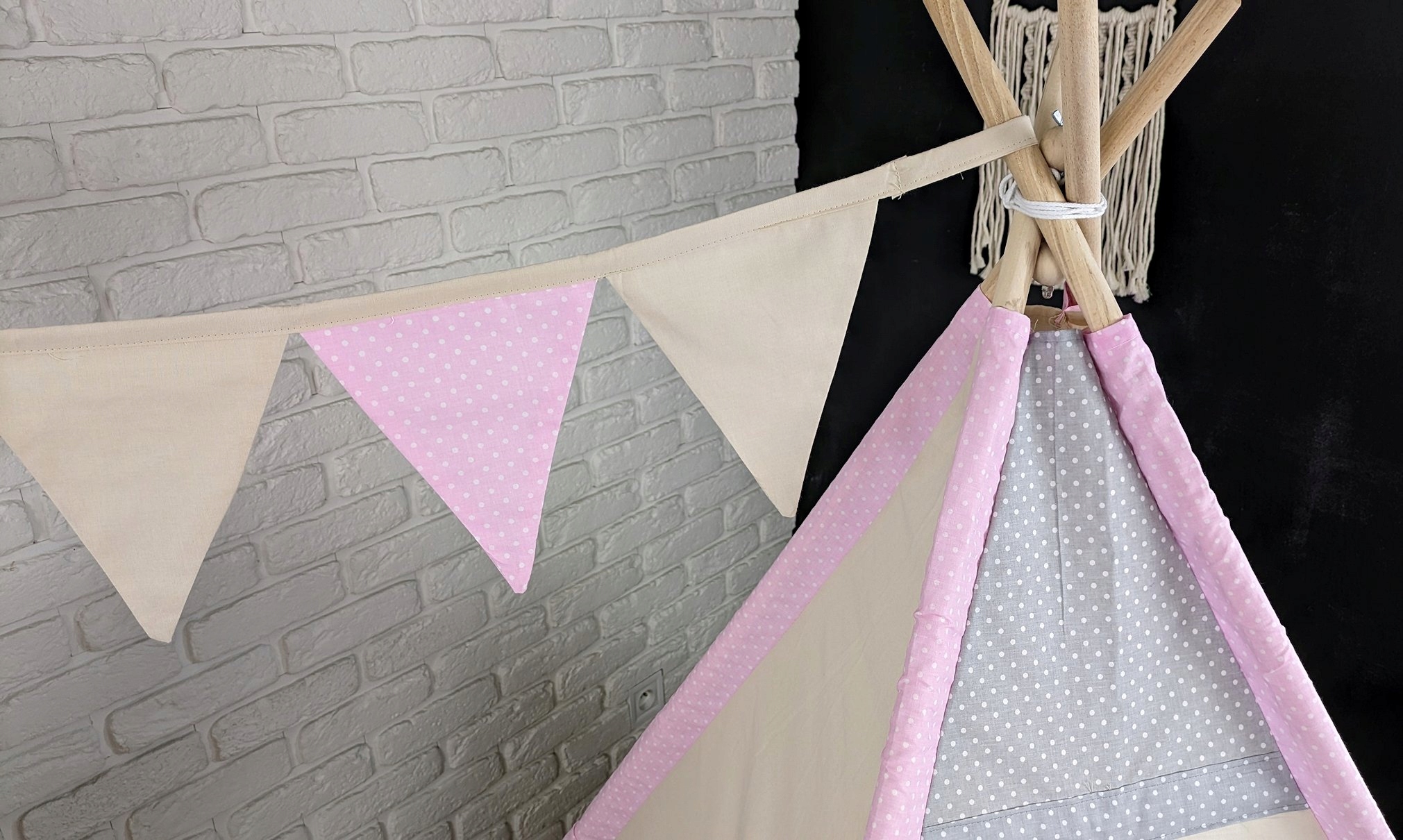 Палатки-типи можно комбинировать с другими товарами нашей марки, такими как постельное белье, корзина для игрушек и гирлянды, благодаря чему можно создать оригинальное оформление детской комнаты.