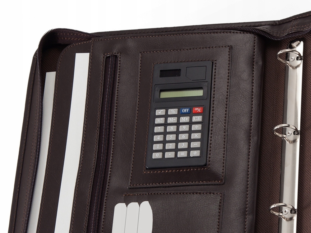 - внутри калькулятор, место для визиток и ручек (карандашей и листов бумаги) бумага в комплект не входит)