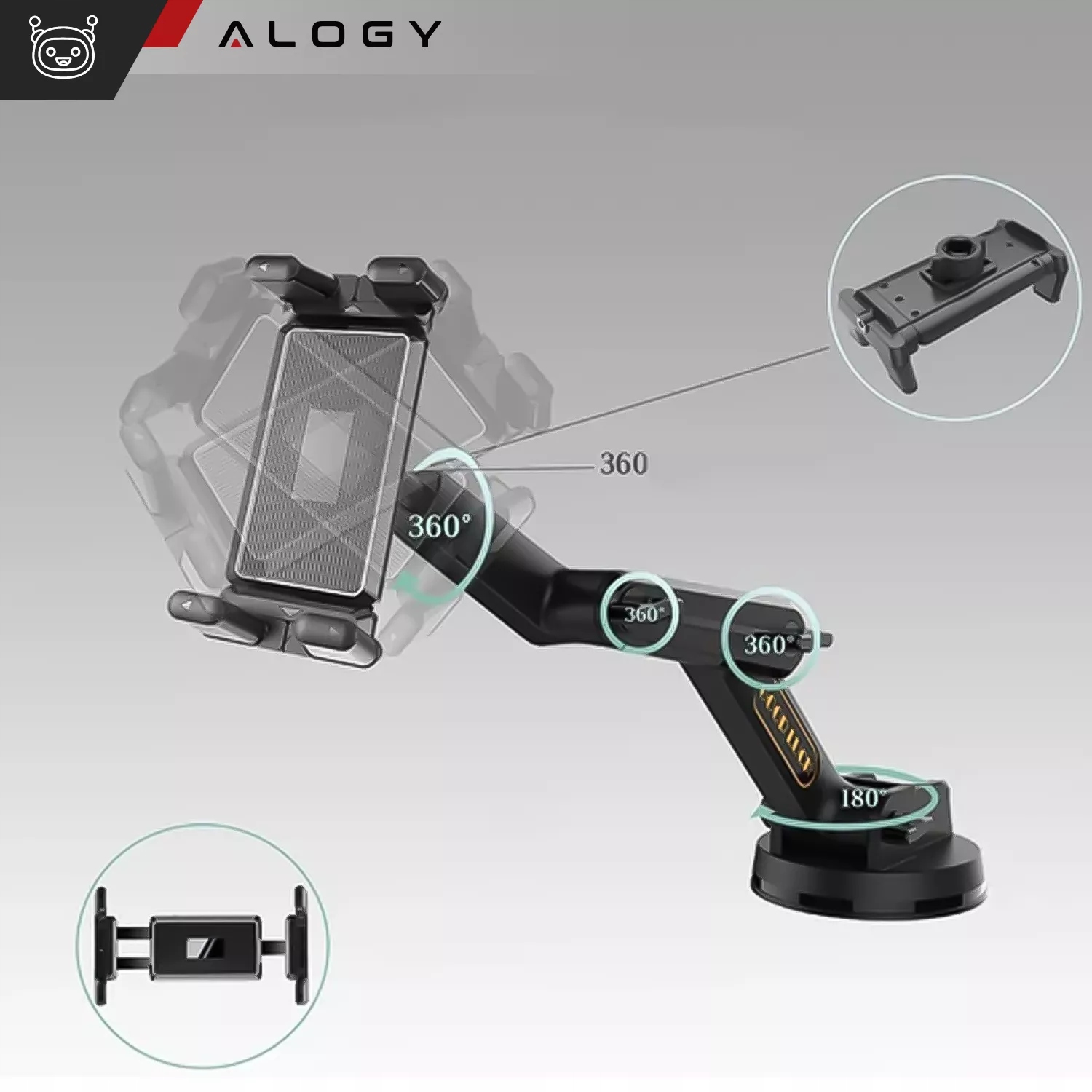 ▶️ Автомобильный держатель для планшета, телефона 10,1" для грузовика, автобуса, грузовика, экскаватора, легкового автомобиля, длина 43см для стекла, кабина Alogy, Черный