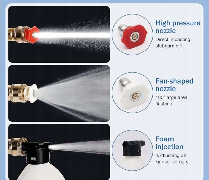 Режим высокого давления позволяет интенсивно удалять грязь благодаря концентрированной воде транслировать. Идеально подходит для удаления даже самой сложной грязи с твердых поверхностей. Водный поток под давлением, аналогично традиционному душу. Идеально подходит для нежного мытья поверхности. Он идеально подходит для очистки тонких поверхностей, таких как лакированные автомобили или садовая мебель