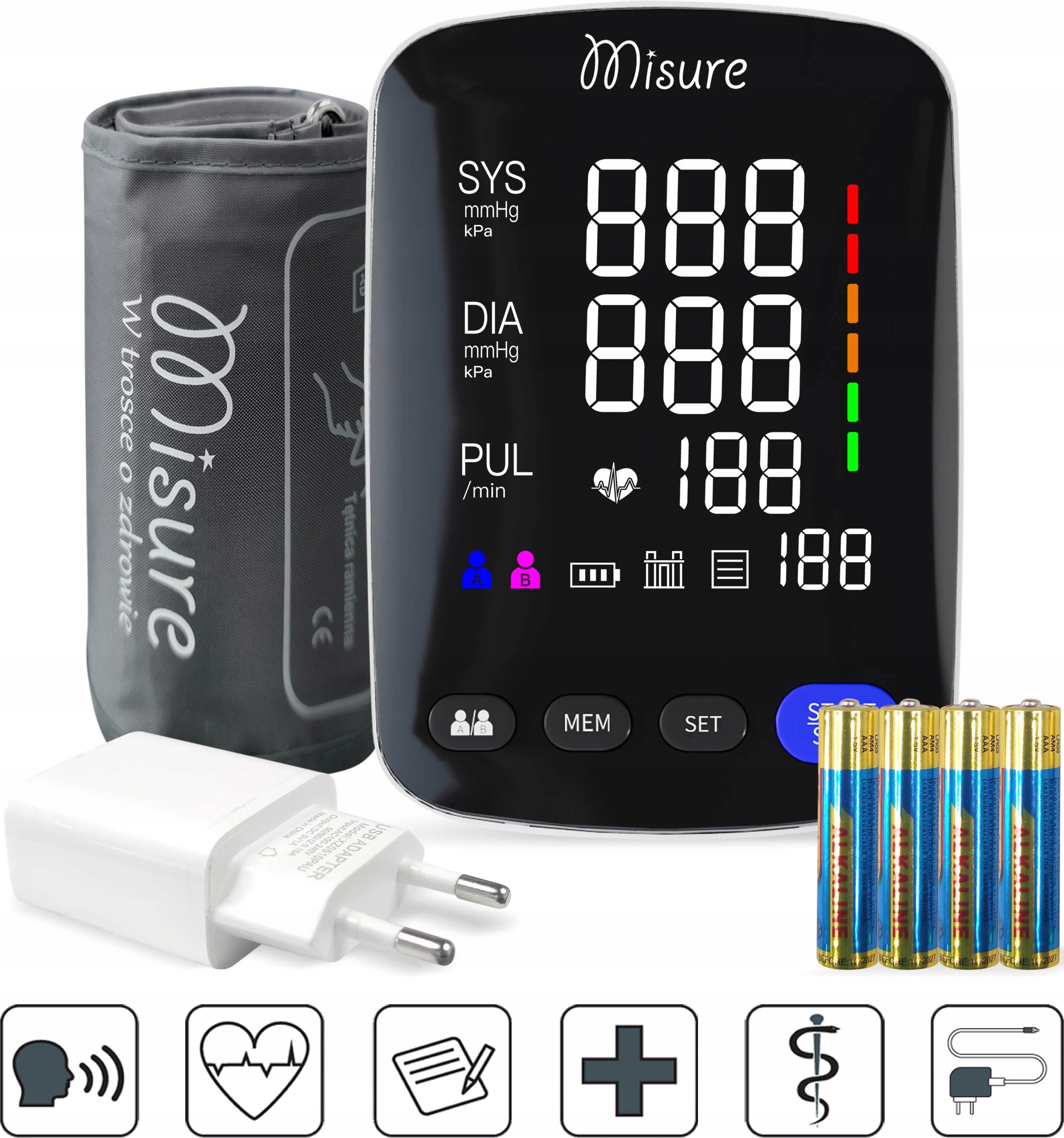 МОНИТОР АРТЕРИАЛЬНОГО ДАВЛЕНИЯ - АРИТМИЯ, ГОВОРИТ НА ПОЛЬСКОМ ЯЗЫКЕ + БЛОК ПИТАНИЯ USB C