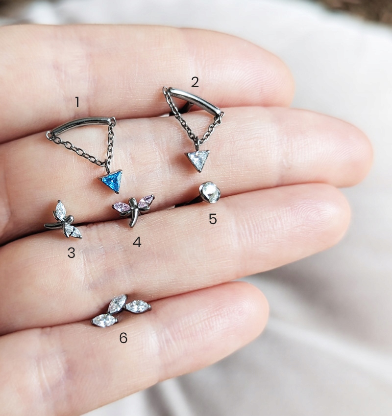 Титановый лайт серебряный дренаж бесцветный в ушной спиральной ушной стразах 1,2/8