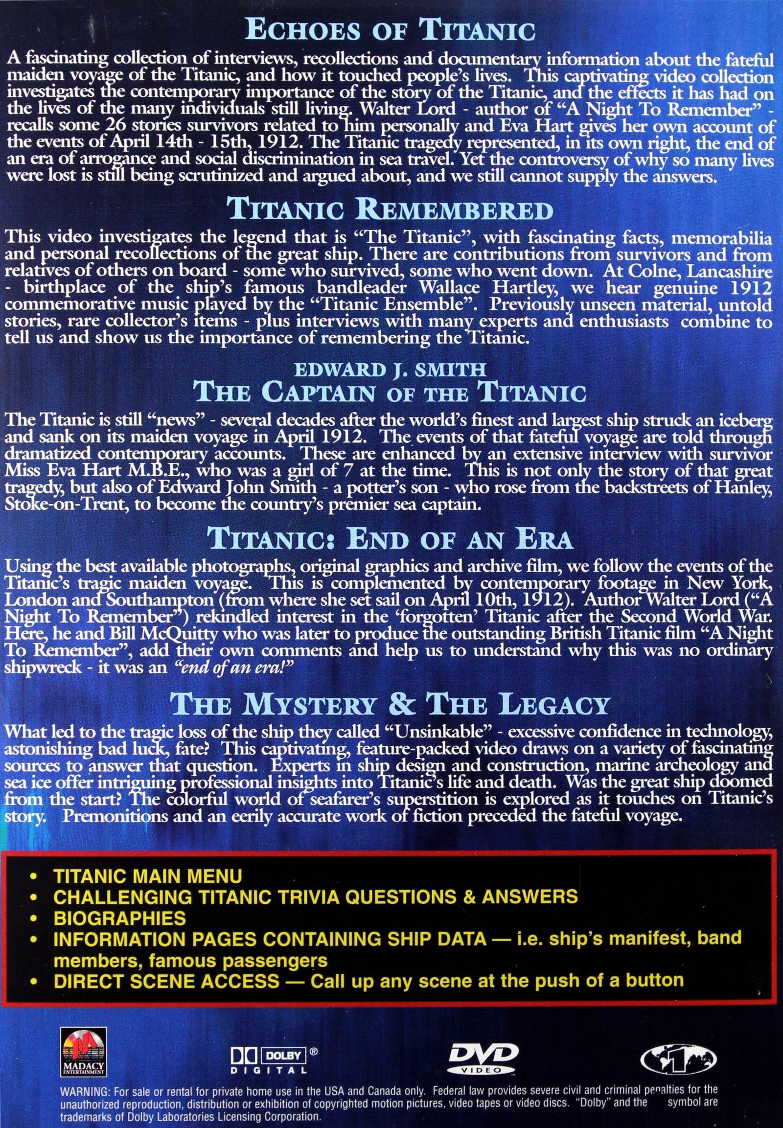 Просматривая «ТИТАНІК: ТАЄМНА + СПАДЩИНА [5DVD]», вы можете быть уверены, что данный товар из каталога «Научно-популярных» будет доставлен из Польши и проверен на целостность. В цене товара, указанной на сайте, учтена доставка из Польши. Внимание!!! Товары для Евросоюза, согласно законодательству стран Евросоюза, могут отличаться упаковкой или наполнением.
