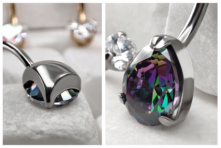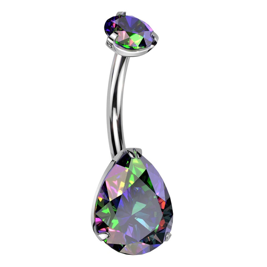 Титановое кольцо на пупке с хрустальной каплей. Изготовлен из высококачественного титана G23, который обеспечивает долговечность и устойчивость к коррозии, и в то же время безопасен для кожи, сводя к минимуму риск возникновения аллергии. Серьга имеет два кристалла, встроенных в титан: более крупный, каплевидной формы, расположенный на нижнем конце, который прекрасно отражает свет, и меньший круглый кристалл наверху, придающий дополнительный блеск. целое. Этот тонкий, но эффектный дизайн делает серьги идеальными как для повседневного использования, так и для особых случаев. Размеры нижнего кристалла: ширина 8,3 мм, высота 10,4 мм.