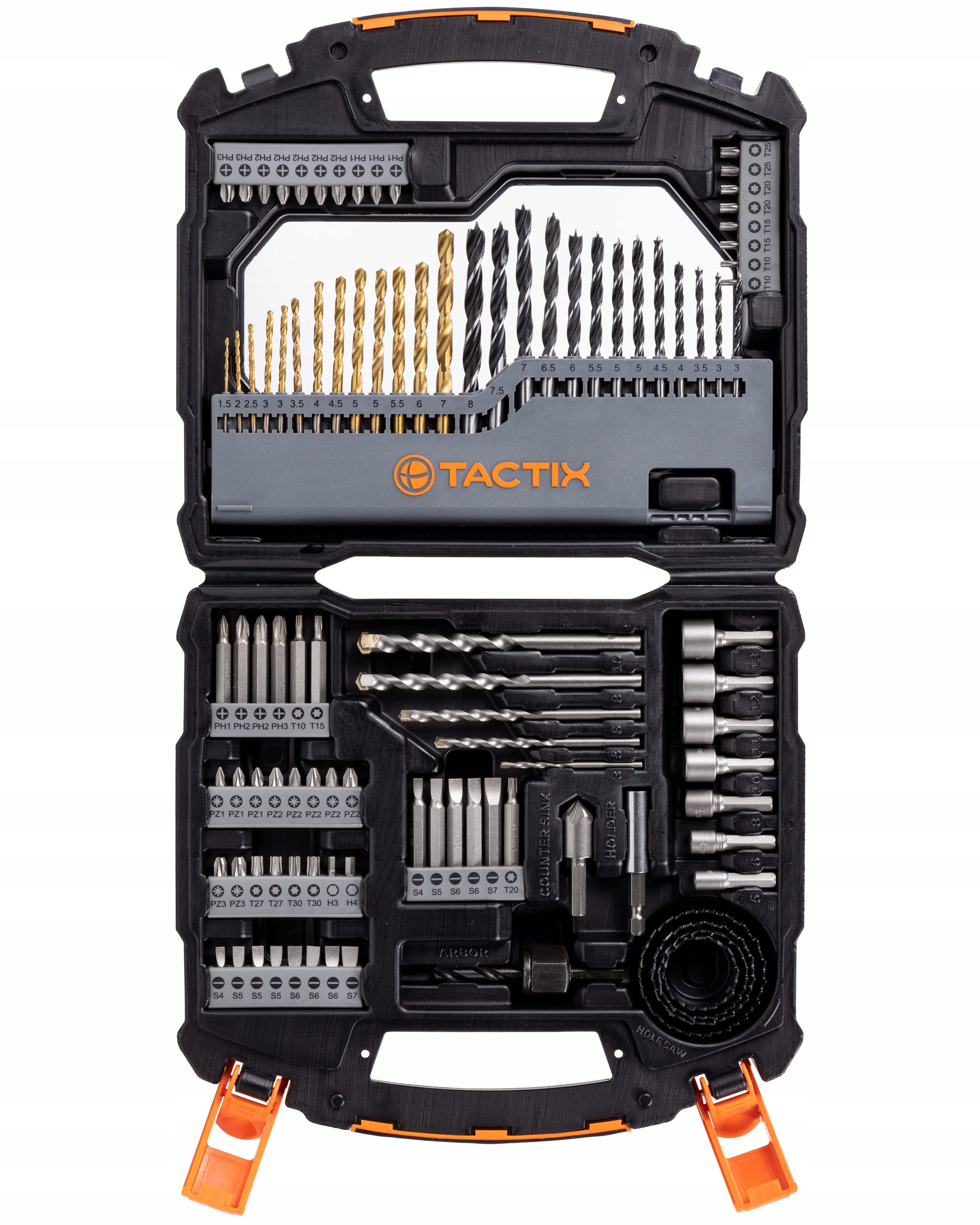 ТИТАНОВІ СВЕРДЛА HSS, БІТИ S2 TACTIX - НАБІР 99 шт.