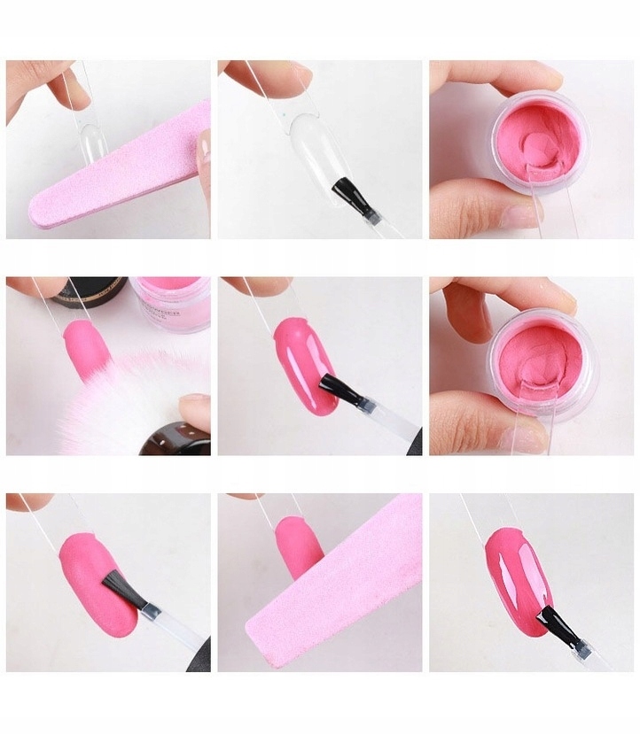 2: нанесите первый слой основания, быстро замочите гвоздь в прозрачном Порошок. Слои активатора и оставьте, чтобы высохнуть в течение 2 минут.
