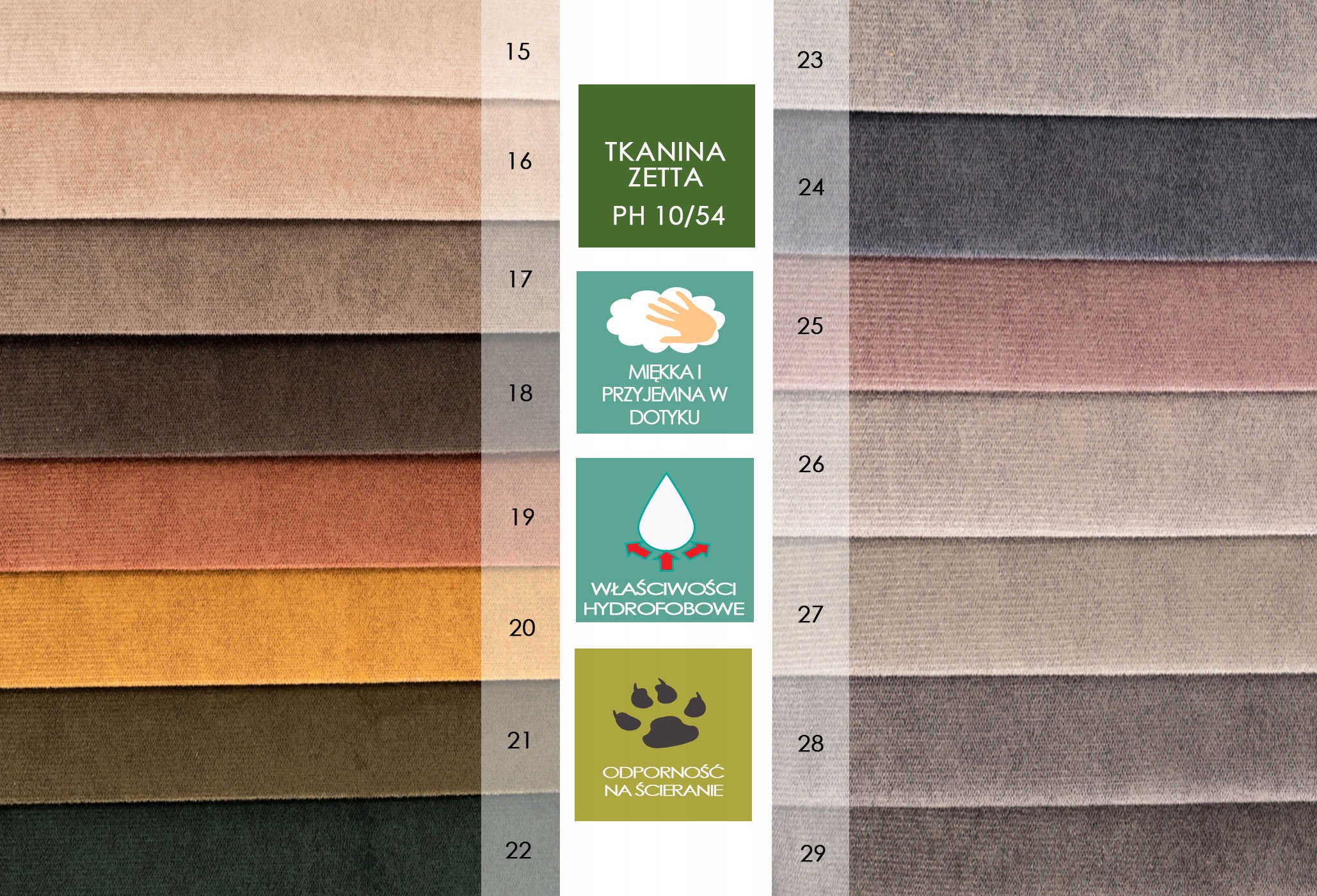 У нас есть устойчивые к загрязнениям, простые в уходе и гидрофобные ткани от многих производителей (например, Cleanaboo, Aquaclean, Fargotex).
