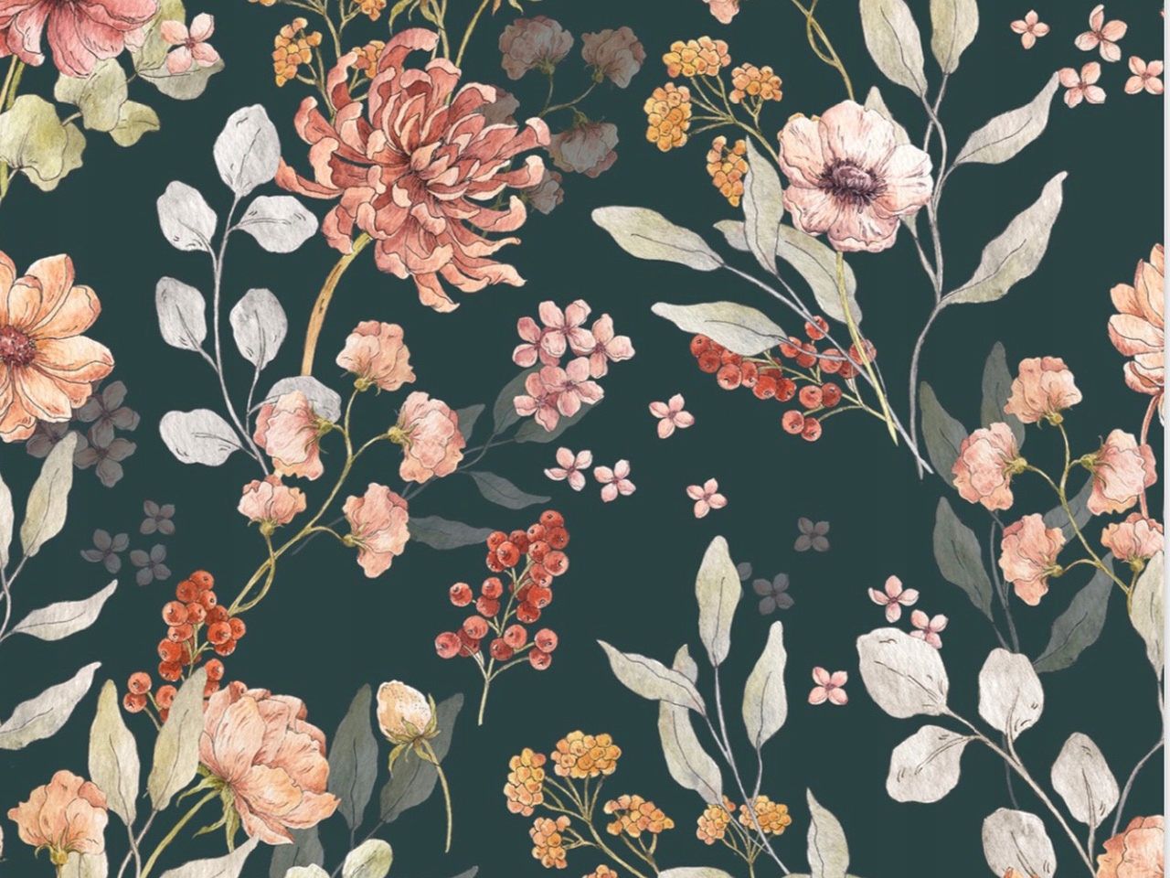 Высококачественный рисунок хлопчатобумажной ткани винтажные цветы на графите. Печать сделано с помощью цифрового метода, что делает его незаметным.