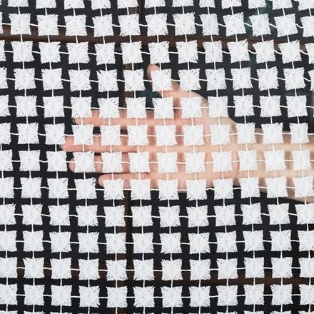 Здесь и там вплетены блестящие нити, благодаря чему материал красиво переливается.